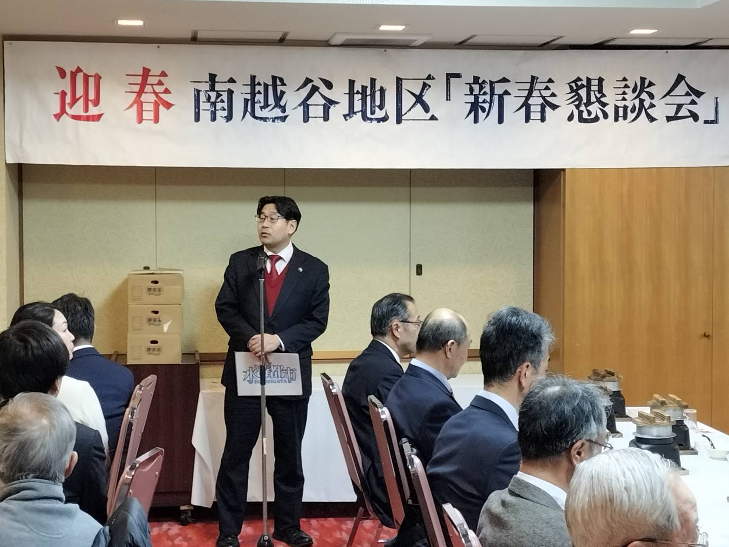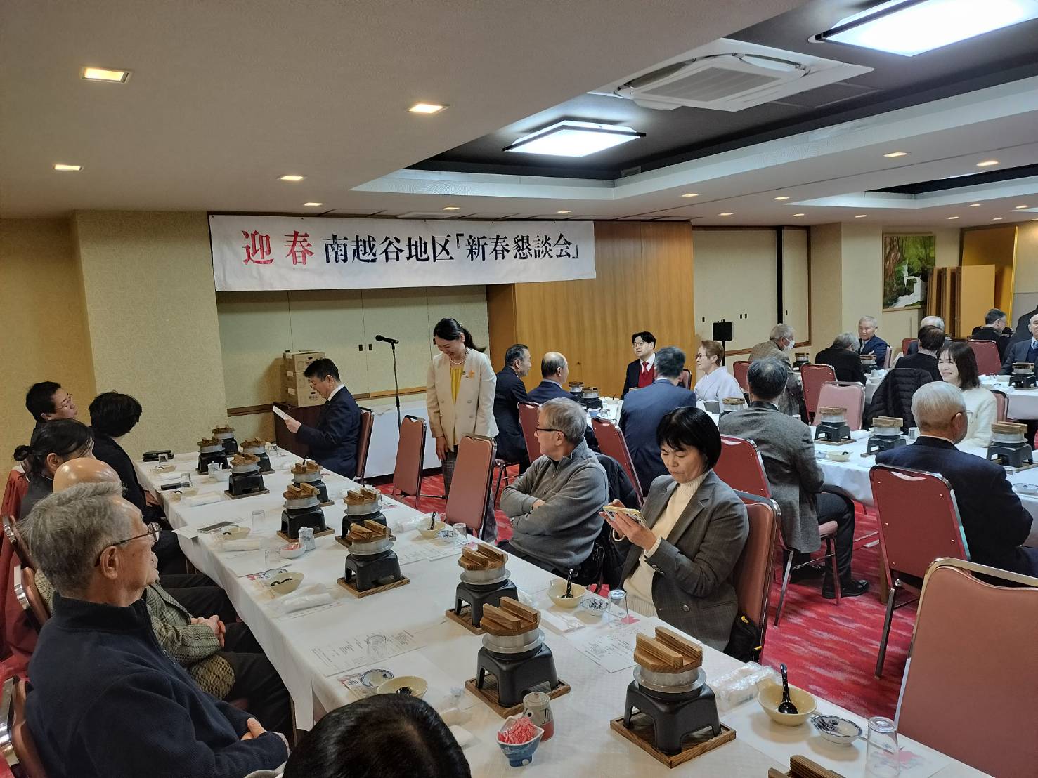 1月18日(日)午後6時から砂場南越谷店で地区まちづくり4団体の「新春懇談会」が、来賓に福田市長、国会議員、市会議員、富士中校長等のご出席の下、59名の参加で開催されました。